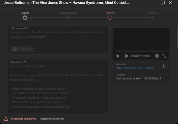 In one of the most powerful moments of the interview, Alex Jones was scanned live on air using a Non-Linear Junction Detection